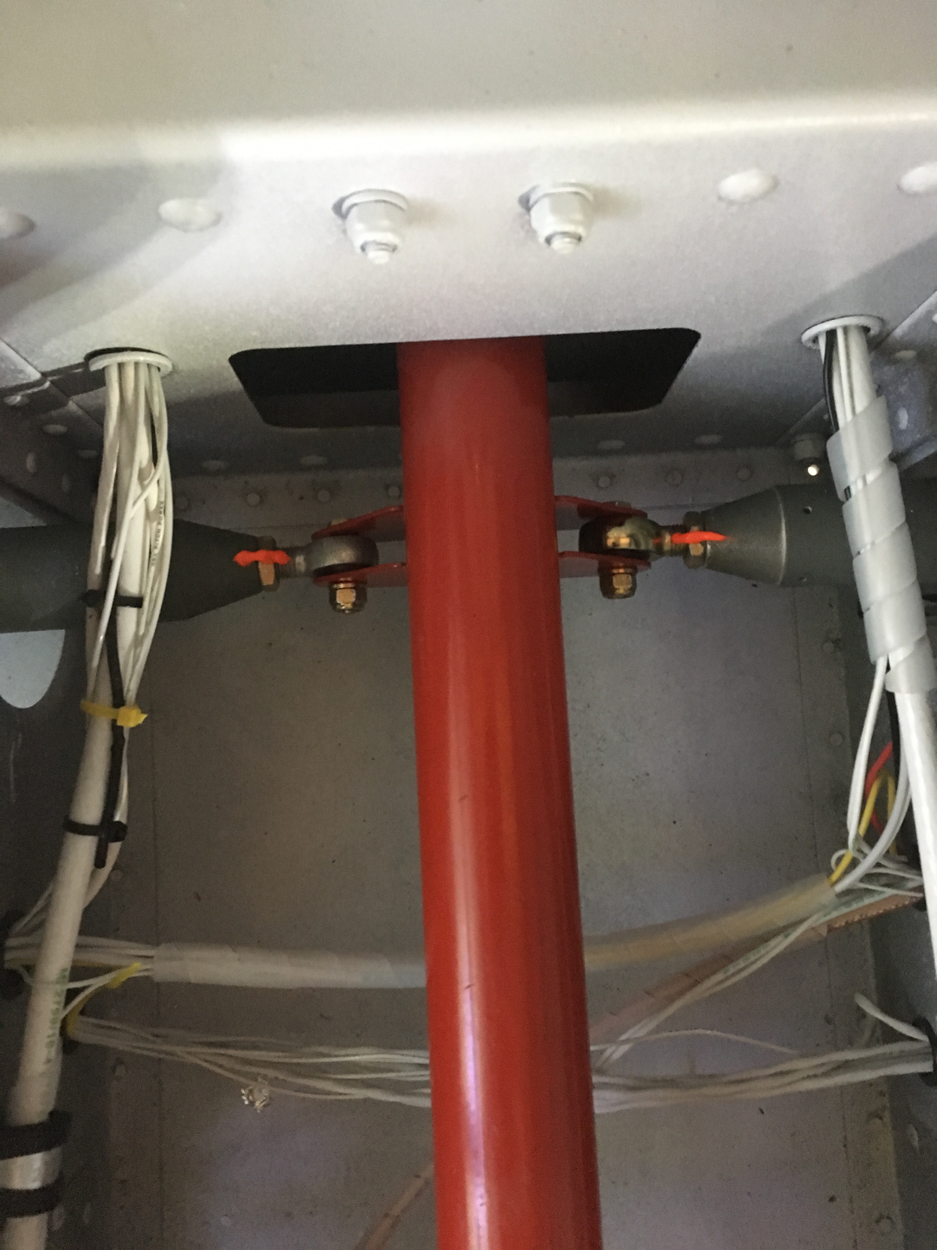 AIleron pushrod rigging, brake system serviced, seats and belts, tailwheel steering control.